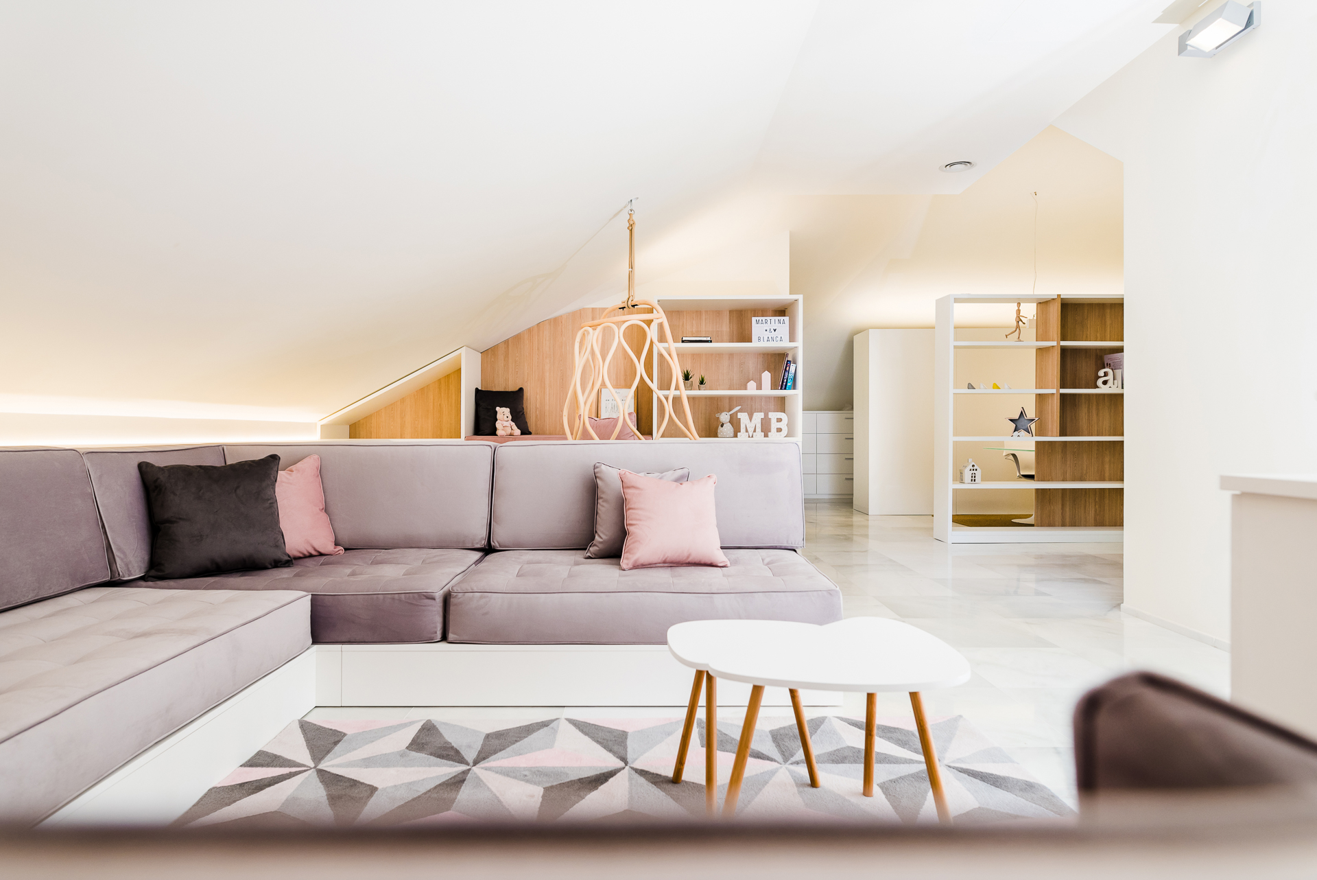 Los propietarios de este dúplex buscaban sacar provecho y disfrutar de todas las estancias de su vivienda. La planta superior la usaban más cómo trastero que como buhardilla. La propuesta fue organizar la buhardilla mediante distintas piezas de mobiliario, dando como resultado una distribución bien cuidada que aprovecha al máximo el espacio disponible.